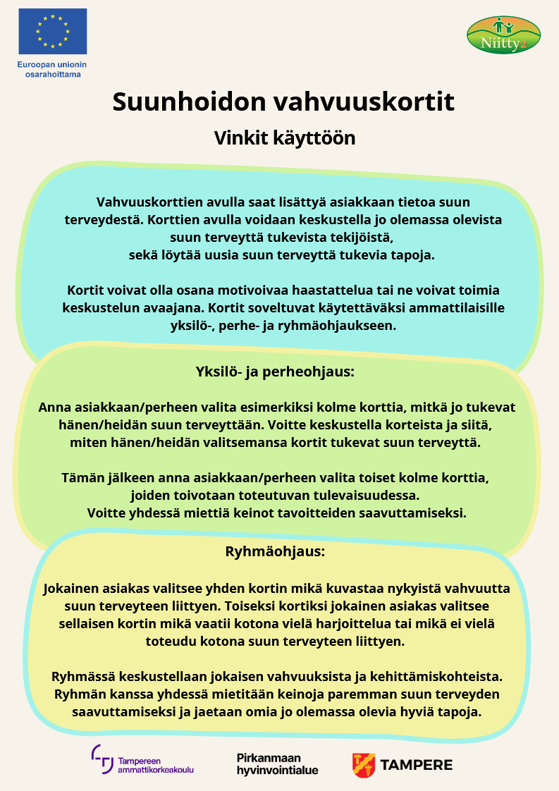 Tulosta, leikkaa ja halutessasi laminoi kortit itsellesi ohjaustyöhön. Korttien avulla voi jutella perheen ruokailusta, kasvatuksellisista käytännöistä ja ruokavalinnoista – henkilökohtaisesti vanhemman kanssa tai ryhmäkeskusteluna.